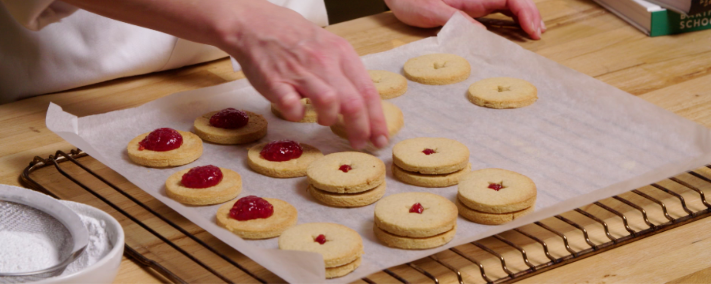 Learn to bake classic jam-filled Linzer Cookies, a traditional shortbread style, and discover Pfeffernüsse, small spiced biscuits boasting a beautiful soft, chewy texture. Both make ideal gifts!