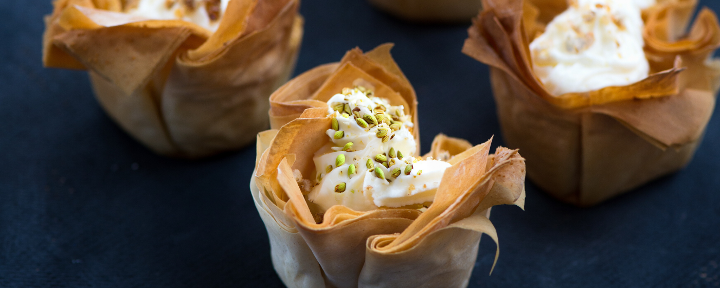 Flaky filo cups filled with a delicate and creamy white chocolate and pistachio filling. These desserts are wonderful way to get Junior Bakers trying their hand at working with filo pastry, a paper thin dough that needs a light touch and plenty of layering. Enjoy these sweet treats on the sweetest of days… (it’s Valentine’s Day!!)